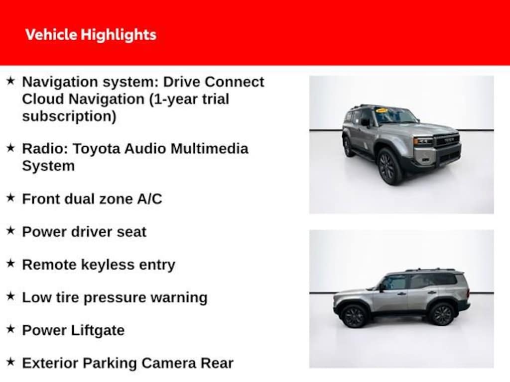 This is an exceptional vehicle at an affordable price! A turbocharger further enhances performance, while also preserving fuel economy. With less than 10,000 miles on the odometer, this 4 door sport utility vehicle prioritizes comfort, safety and convenience. All of the premium features expected of a Toyota are offered, including: an automatic dimming rear-view mirror, tilt steering wheel, and cruise control. It features four-wheel drive capabilities, a durable automatic transmission, and a 2.4 liter 4 cylinder engine.